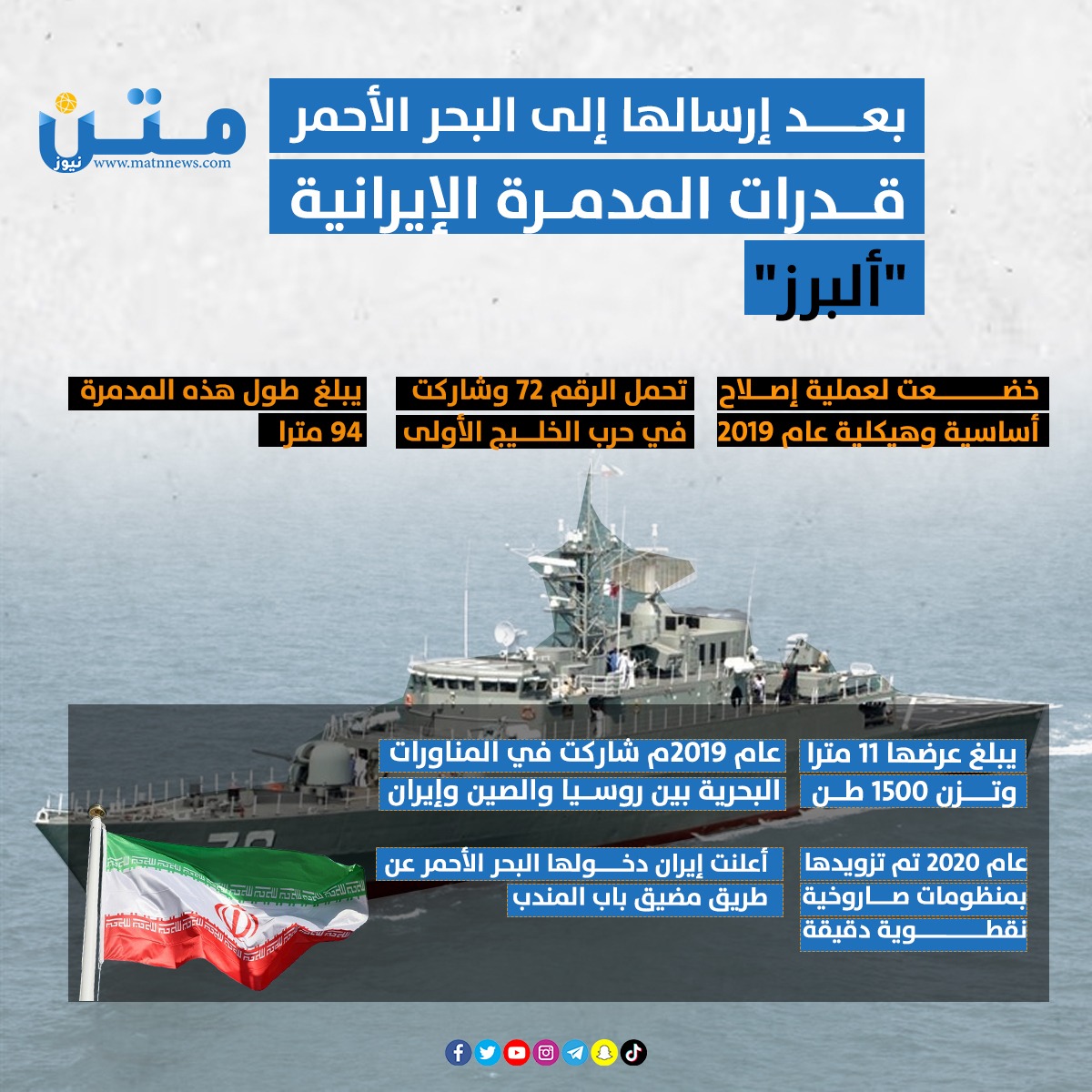 بعد إرسالها إلى البحر الأحمر.. قدرات المدمرة الإيرانية "ألبرز" (إنفوجراف)