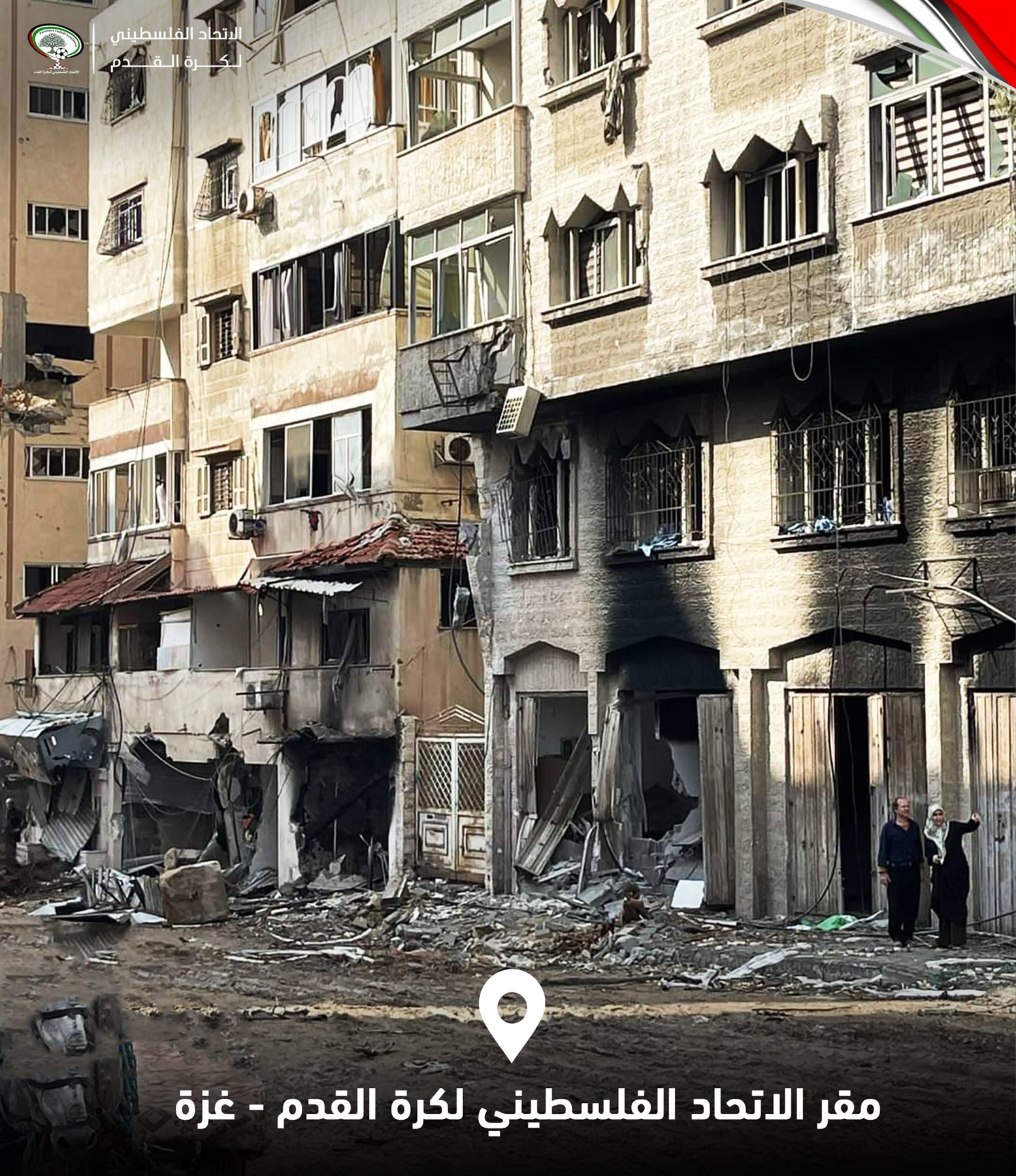ونشر الاتحاد الفلسطيني لكرة القدم، بيانا مقتضبا اليوم الخميس، جاء فيه: "قوات الاحتلال تدمر مقريّ الاتحاد واللجنة الأولمبية في غزة".