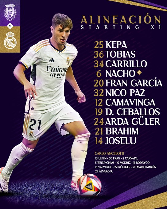 ويبدأ التركي أردا جولر البالغ 18 عاما، أساسيا لأول مرة بقميص الملكي منذ انضمامه عقب تعافيه من الإصابة.