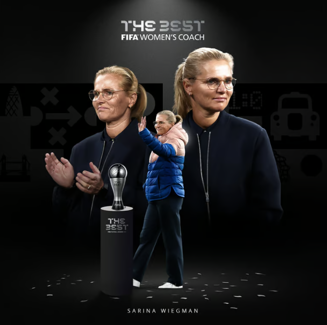 - توجت سارينا ويجمان مدربة منتخب إنجلترا للسيدات كأفضل مدربة لعام 2023 المقدمة من الاتحاد الدولي لكرة القدم "فيفا"، وتفوقت على جوناتان خيرالديز مدرب فريق برشلونة الإسباني للسيدات، وإيما هايز مدربة فريق تشيلسي الإنجليزي للسيدات.