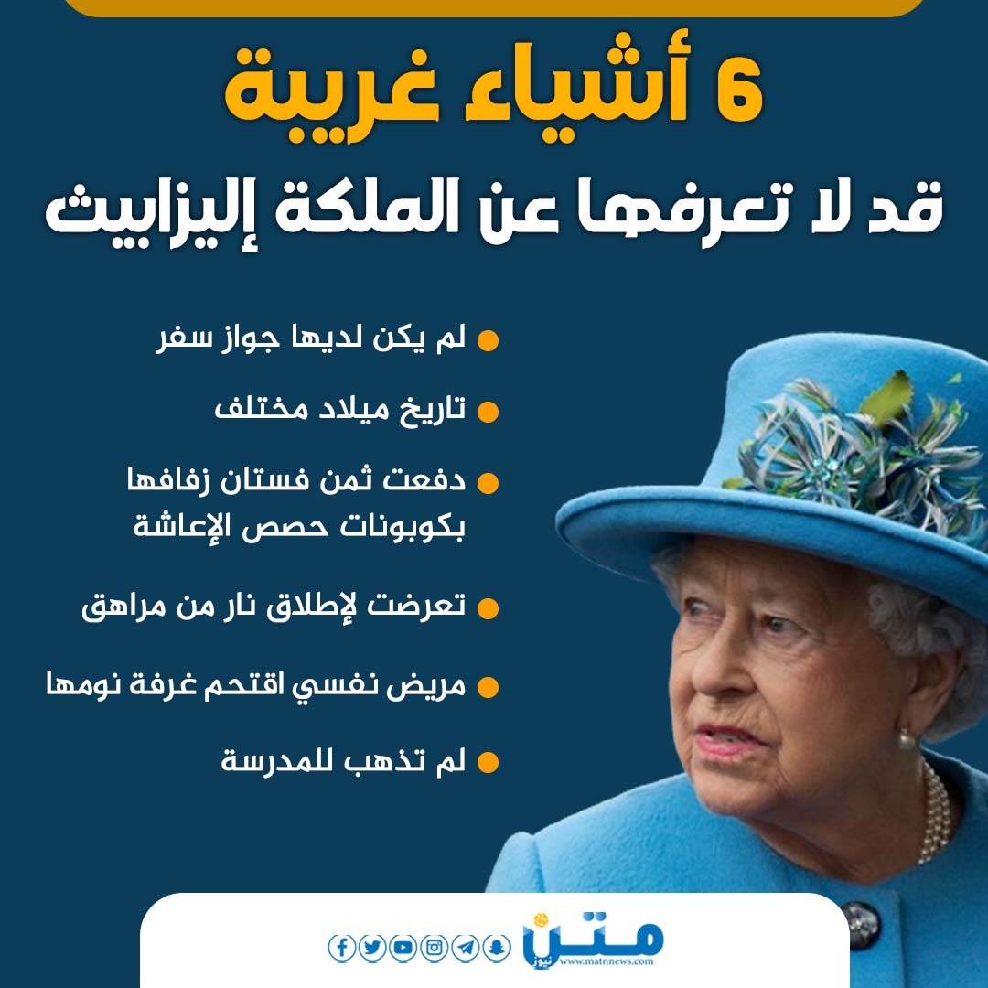 6 أشياء غريبة قد لا تعرفها عن الملكة إليزابيث (انفوجراف)*
