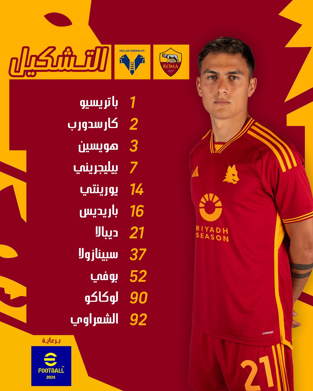 وتعد مباراة هيلاس فيرونا هي الأولي لدانييلي دي روسي في مقعد القيادة الفنية لفريق روما، بعد تولي المهمة بشكل رسمي خلفًا للمدرب البرتغالي جوزيه مورينيو التي تمت إقالته.