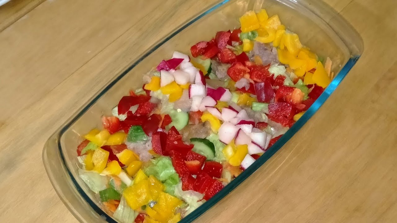 - سلمون مطهو في الفرن مع خضروات الكيل