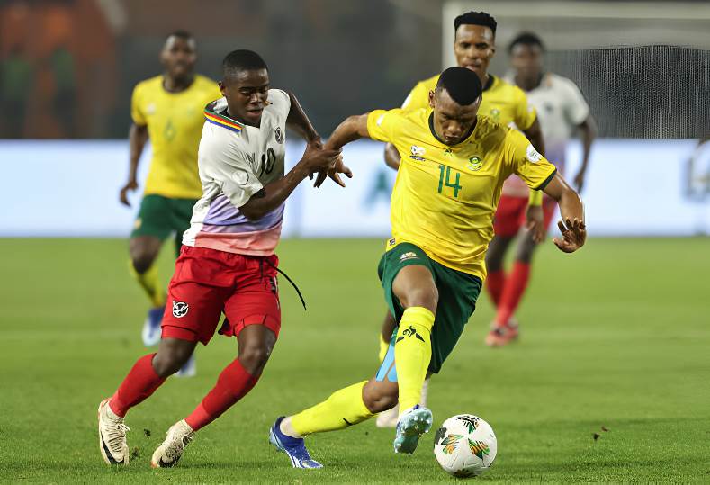 اكتسح منتخب جنوب إفريقيا نظيره ناميبيا، برباعية نظيفة، في المباراة التي أقيمت بينهما مساء الأحد، على ملعب "أمادو جون كوليبالي"، ضمن منافسات الجولة الثانية من المجموعة الخامسة في كأس أمم إفريقيا 2023.