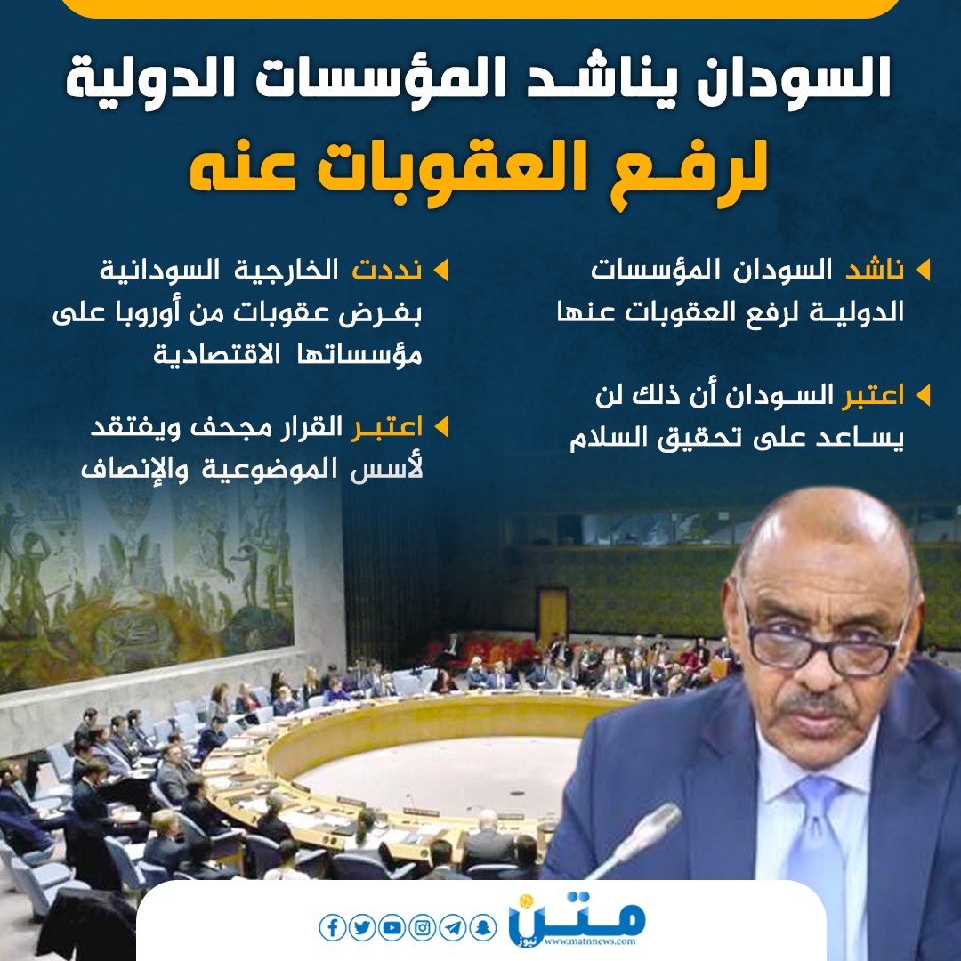 - ناشدت السودان المؤسسات الدولية لرفع العقوبات عنها