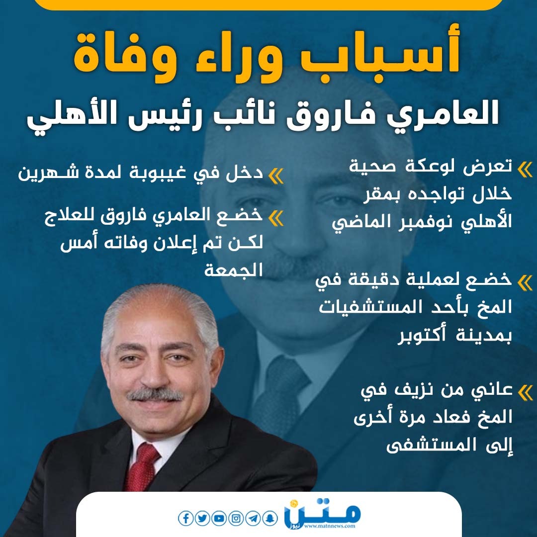 أسباب وراء وفاة العامري فاروق نائب رئيس الأهلي (انفوجراف)
