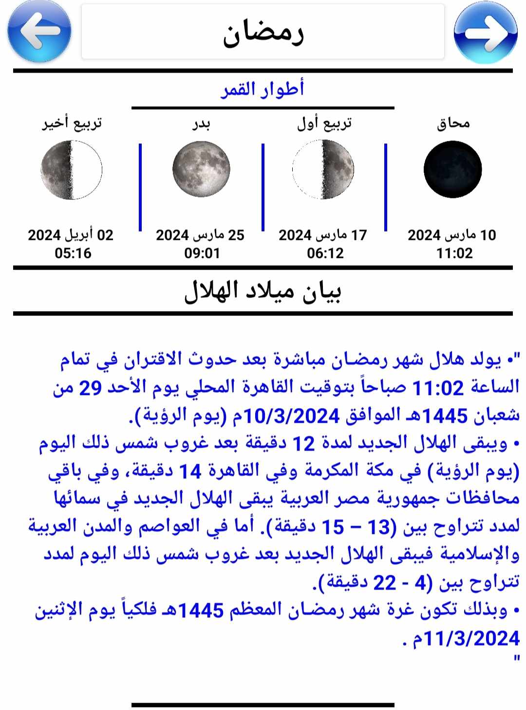 - بداية شهر رمضان 2024 يوم الإثنين 11 مارس