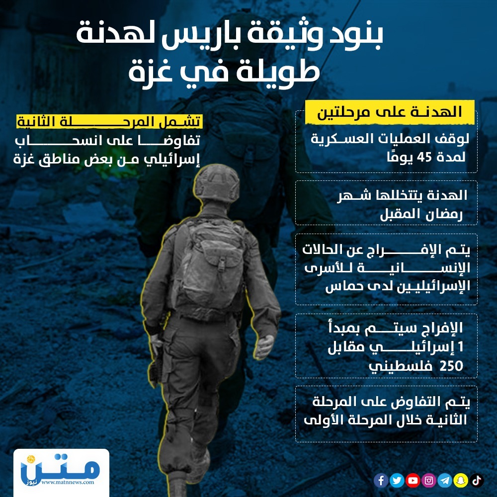 بنود وثيقة باريس لهدنة طويلة في غزة (إنفوجراف)