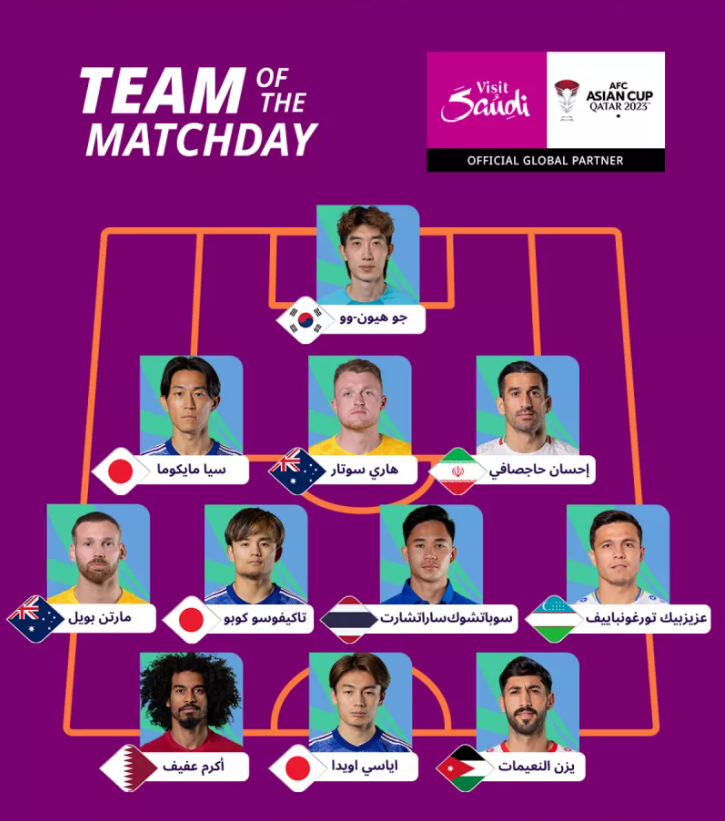 وجاء التشكيل الأفضل في دور الـ16 من كأس آسيا كالتالي: