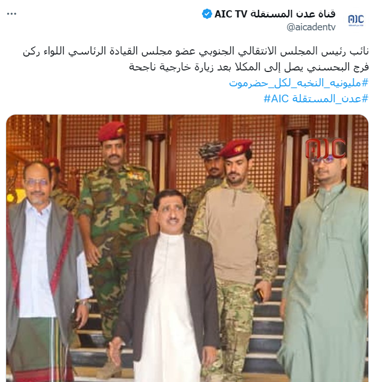 وصل نائب رئيس المجلس الانتقالي الجنوبي عضو مجلس القيادة الرئاسي اللواء ركن فرج البحسني يصل إلى المكلا بعد زيارة خارجية ناجحة.