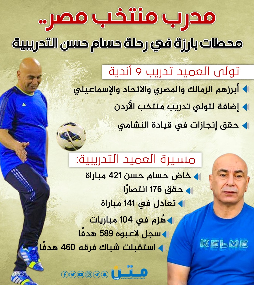 مدرب منتخب مصر.. محطات بارزة في رحلة حسام حسن التدريبية (انفوجراف)
