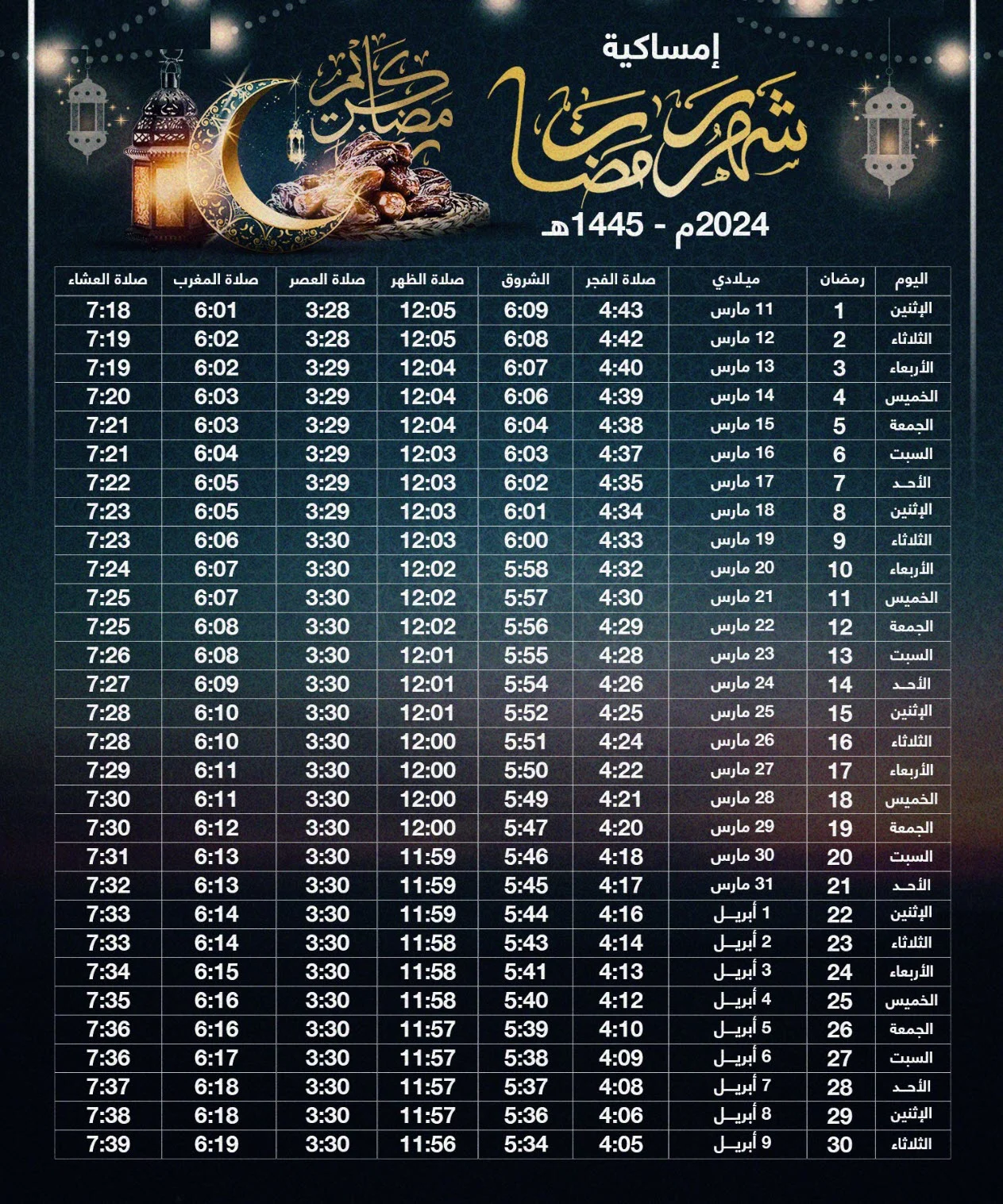 إمساكية رمضان 2024