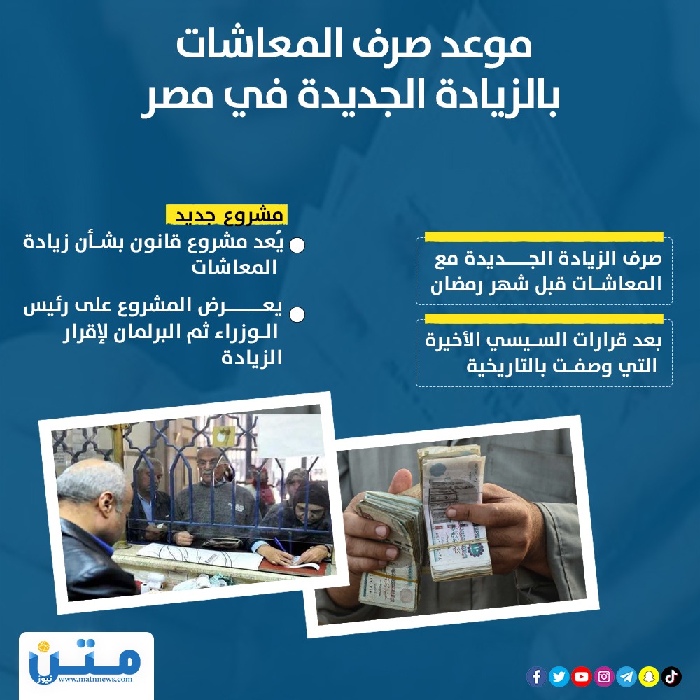 موعد صرف المعاشات بالزيادة الجديدة في مصر (انفوجراف)