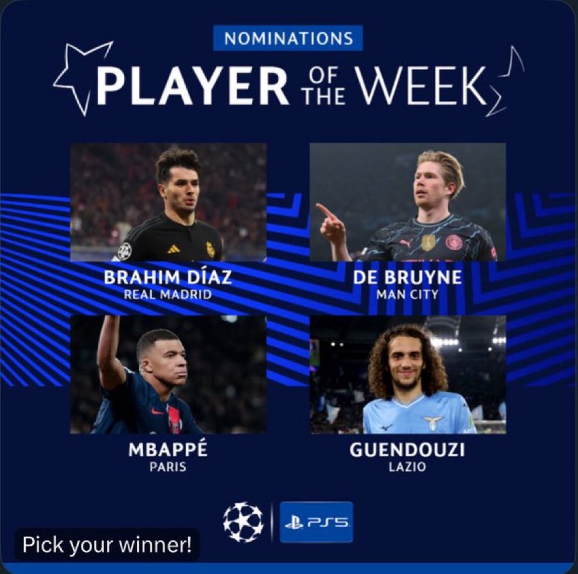 مبابي ينافس دي بروين وثنائي آخر على جائزة أفضل لاعب بدوري الأبطال