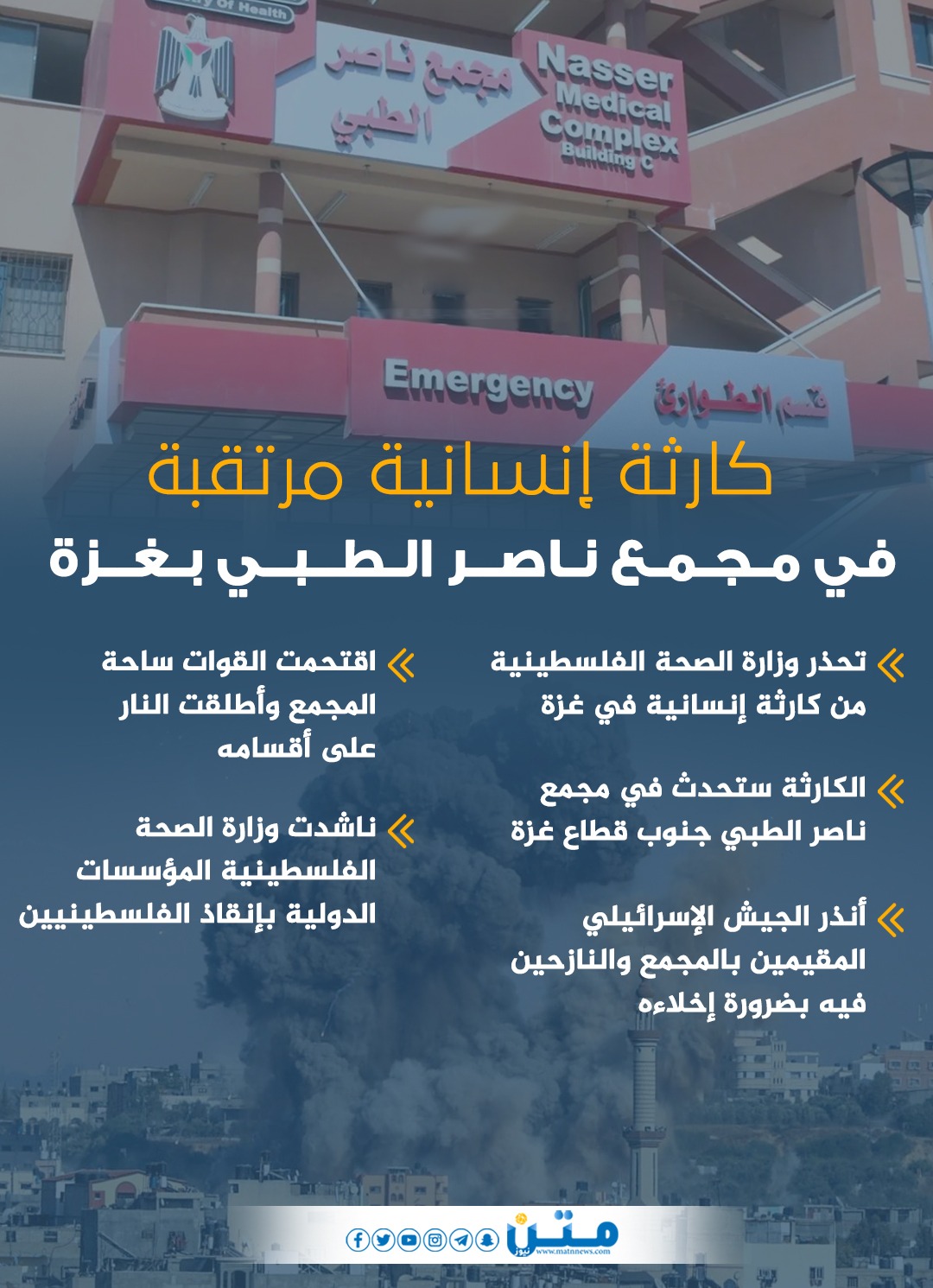 كارثة إنسانية مرتقبة في مجمع ناصر الطبي بغزة (إنفوجراف)