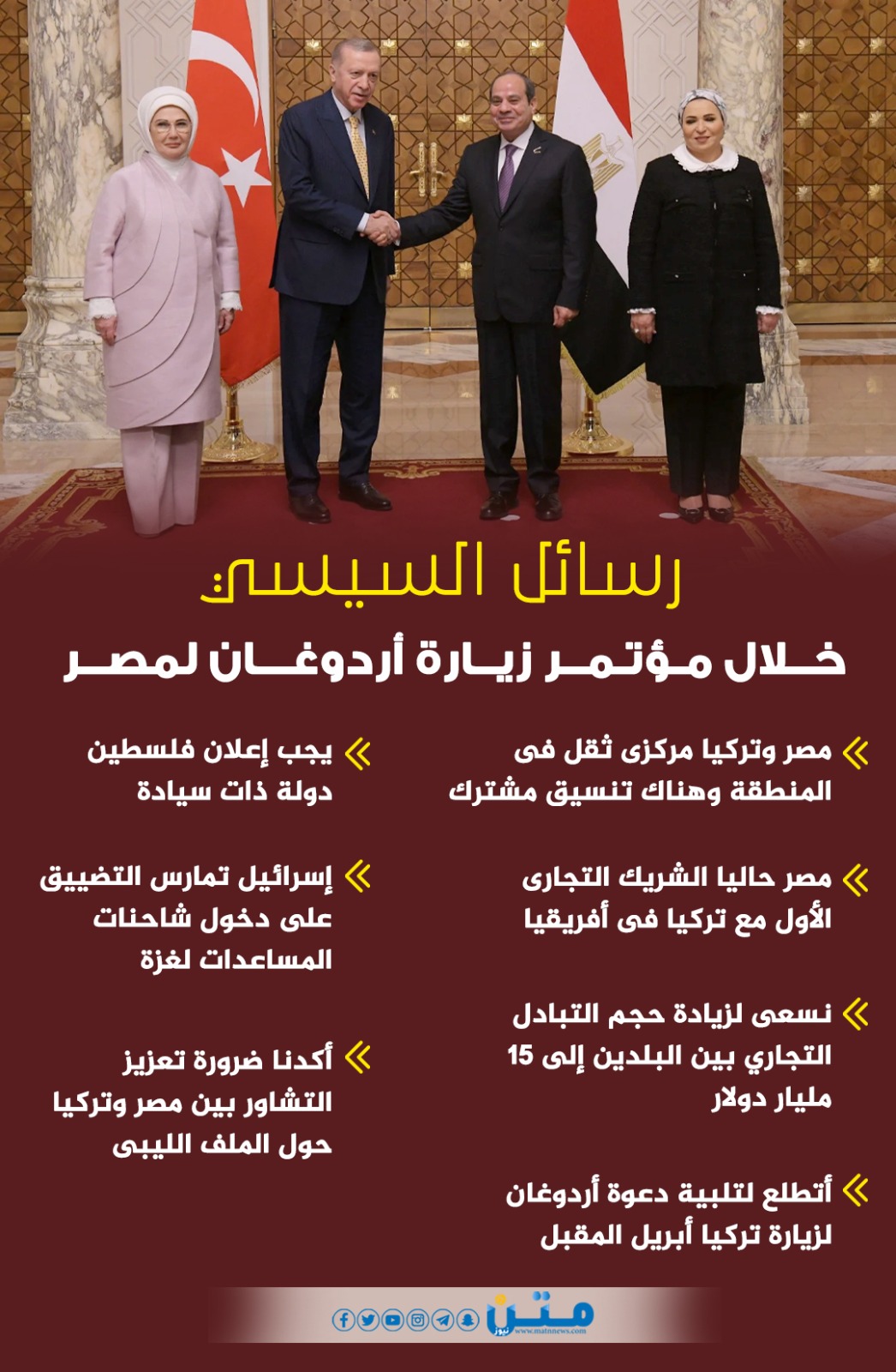 رسائل السيسي خلال مؤتمر زيارة أردوغان لمصر (انفوجراف)