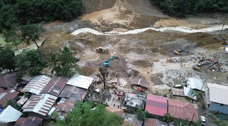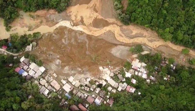 وتسبب انزلاق التربة في بلدة ماسارا القريبة من منجم للذهب في طمر محطة الحافلات الخاصة بموظفي المنجم، فضلا عن 55 منزلا في هذه البلدة الواقعة في جزيرة مينداناو جنوب الفلبين.