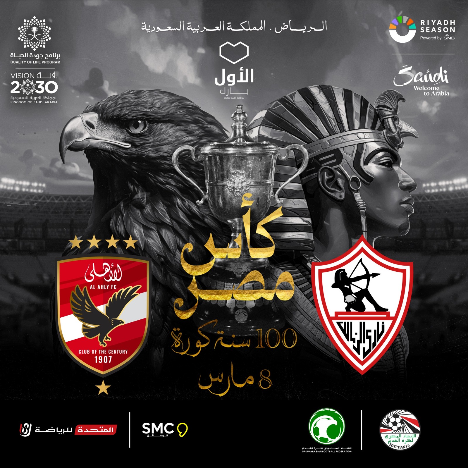 "100 سنة كورة".. شعار نهائي كأس مصر بين الأهلي والزمالك بالسعودية