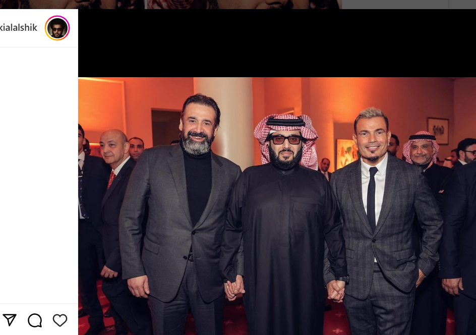 عمرو دياب.. شارك المستشار تركي آل الشيخ رئيس الهيئة العامة للترفيه بالمملكة العربية السعودية، متابعيه عبر السوشيال ميديا، صورة تجمعه مع الفنان عمرو دياب والفنان كريم عبد العزيز، وذلك من كواليس حفل "ليالي سعودية مصرية".