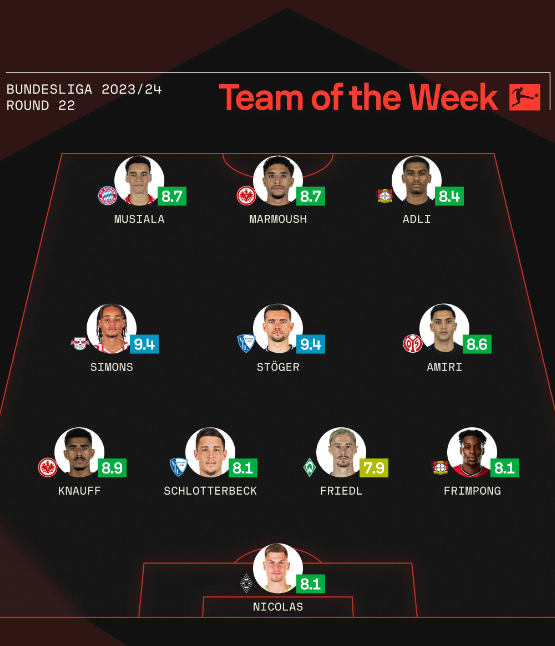 واختارت شبكة "Sofascore" العالمية، التشكيل المثالي للجولة 22 من الدوري الألماني، وشهدت تواجد مرموش بعد المستوى الرائع الذي قدمه مع آينتراخت فرانكفورت أمام فرايبورج.
