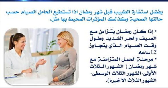 - يجب الحصول على أذن بالصيام من الطبيب المختص والمتابع للحالة الصحية للحامل وجنينها.