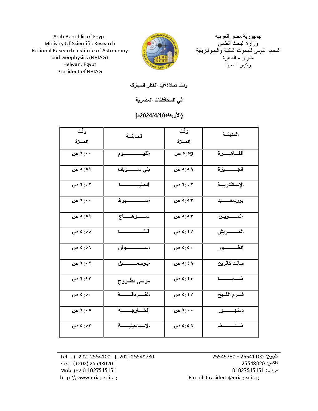 - موعد صلاة عيد الفطر بتوقيت القاهرة: 5:59 صباحا.