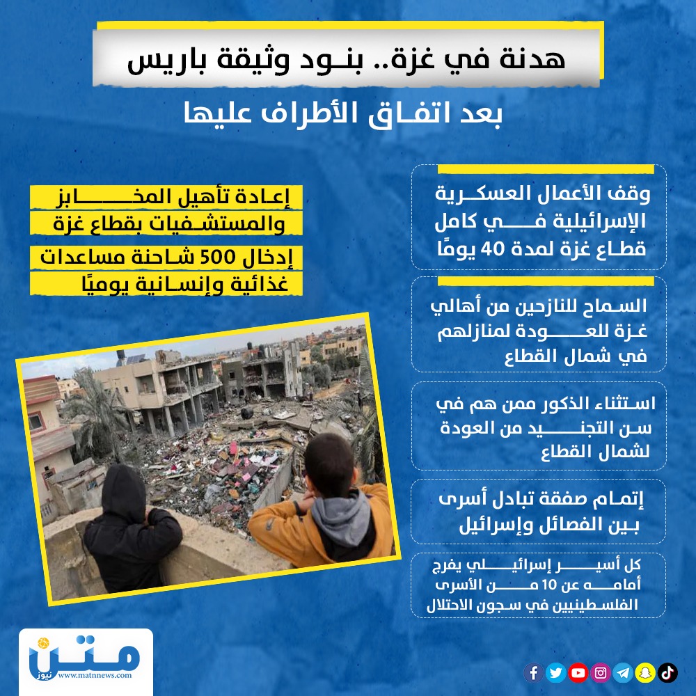 هدنة في غزة.. بنود وثيقة باريس بعد اتفاق الأطراف عليها (إنفوجراف)