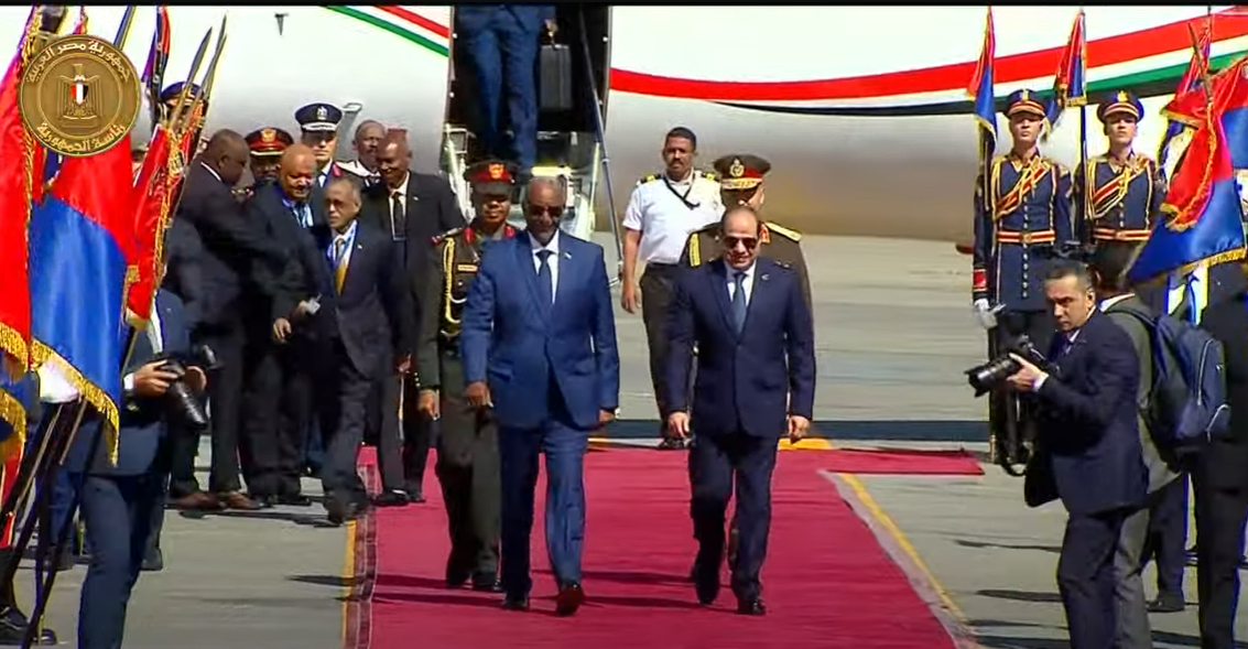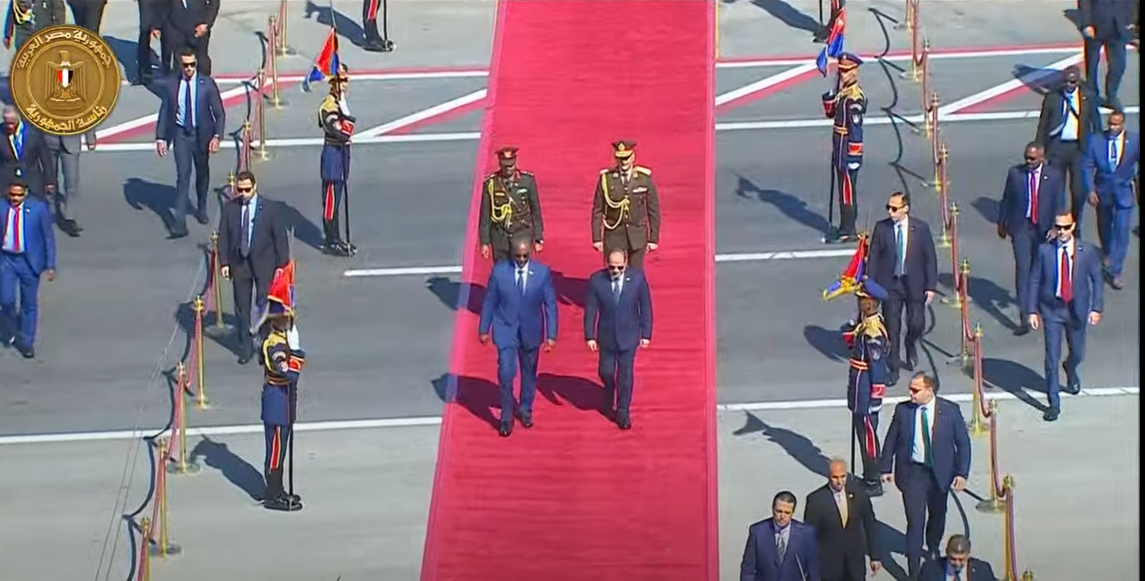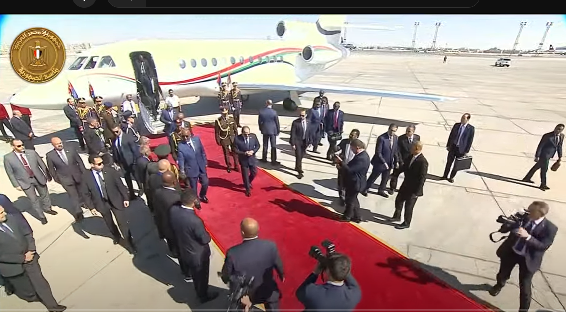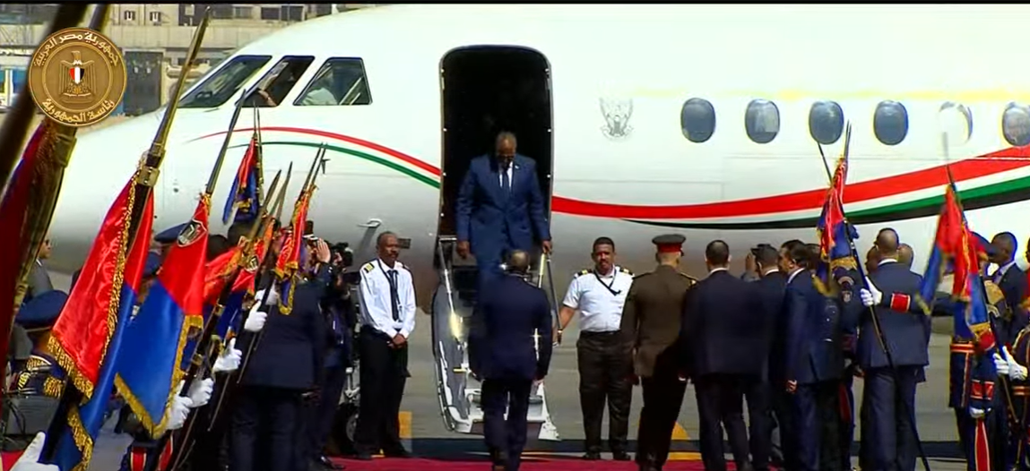 صور توثق لحظة استقبال الرئيس السيسي لرئيس مجلس السيادة السوداني لدى وصوله القاهرة