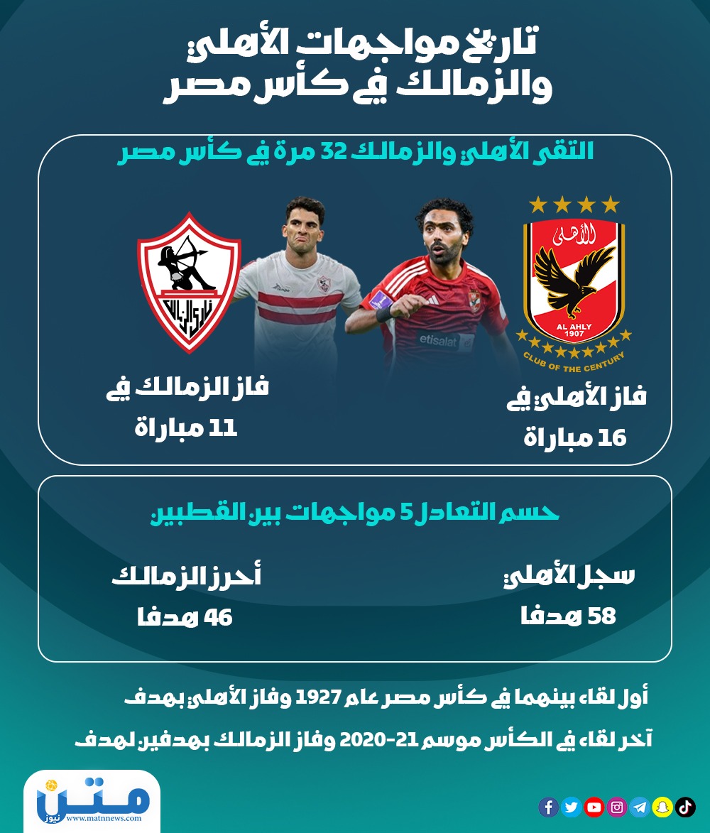 تاريخ مواجهات الأهلي والزمالك في كأس مصر (إنفوجراف)