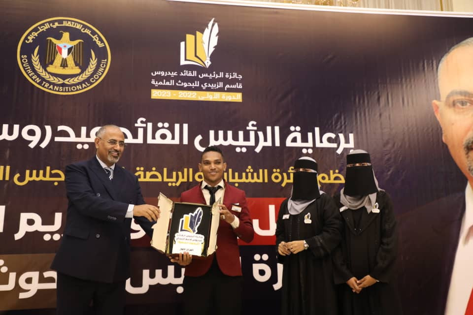 في سياق الحرص والاهتمام الكبير الذي يوليه اللواء عيدروس بن قاسم الزُبيدي، رئيس المجلس الانتقالي الجنوبي، نائب رئيس مجلس القيادة الرئاسي باليمن، لشباب الجنوب وتشجيعه المتواصل للكوادر الجنوبية، شهدت العاصمة عدن يوم السبت، حفل إعلان وتكريم الفائزين بجائزة الرئيس عيدروس الزُبيدي للبحوث العلمية في دورتها الأولى لعام 2024م.