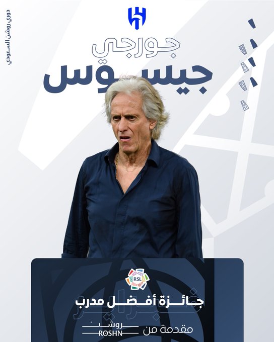 وحصد جيسوس جائزة أفضل مدرب في الدوري السعودي، للمرة الرابعة على التوالي.