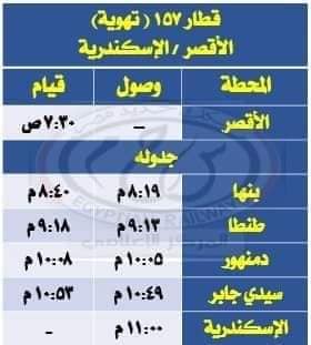 بالإضافة إلى تعديل مواعيد القطارات أرقام ( 586 ثالثة مكيفة الإسكندرية / المنصورة – 157 تهوية ديناميكية الأقصر/ الإسكندرية - 32 تهوية ديناميكية الإسكندرية / القاهرة ) طبقًا للجداول المرفقة .