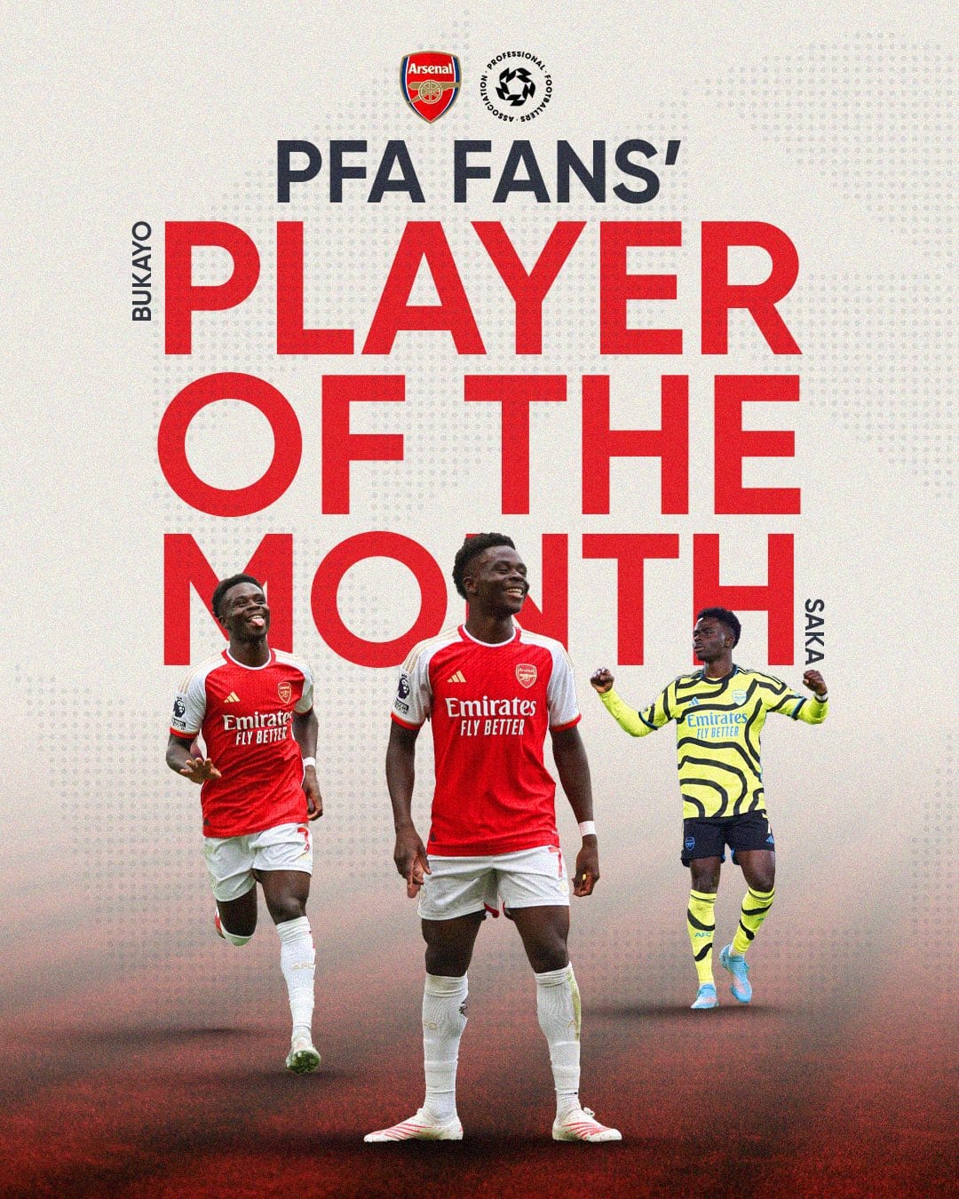 وتوج بوكايو ساكا، بجائزة أفضل لاعب في النادي ارسنال اللندني خلال شهر فبراير، بعد حصوله على أكبر عدد من الأصوات من المشجعين، متفوقًا ثلاثة لاعبين آخرين.