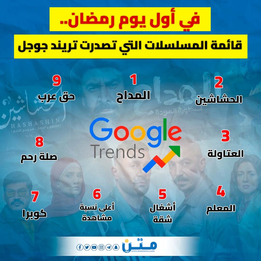 في أول يوم رمضان.. قائمة المسلسلات التي تصدرت تريند جوجل (انفوجراف) الإثنين 11/مارس/2024 - 05:29 م 3/11/2024 5:29:07 PM انفوجراف متن محمد حسن شارك طباعة المداحالحشاشينالعتاولةالمعلمأشغال شقة أعلى نسبة مشاهدةكوبراصلة رحمحق عرب شارك شاهد الحشاشين مسلسلات رين جوجل إنفوجراف قائمة تريند جوجل