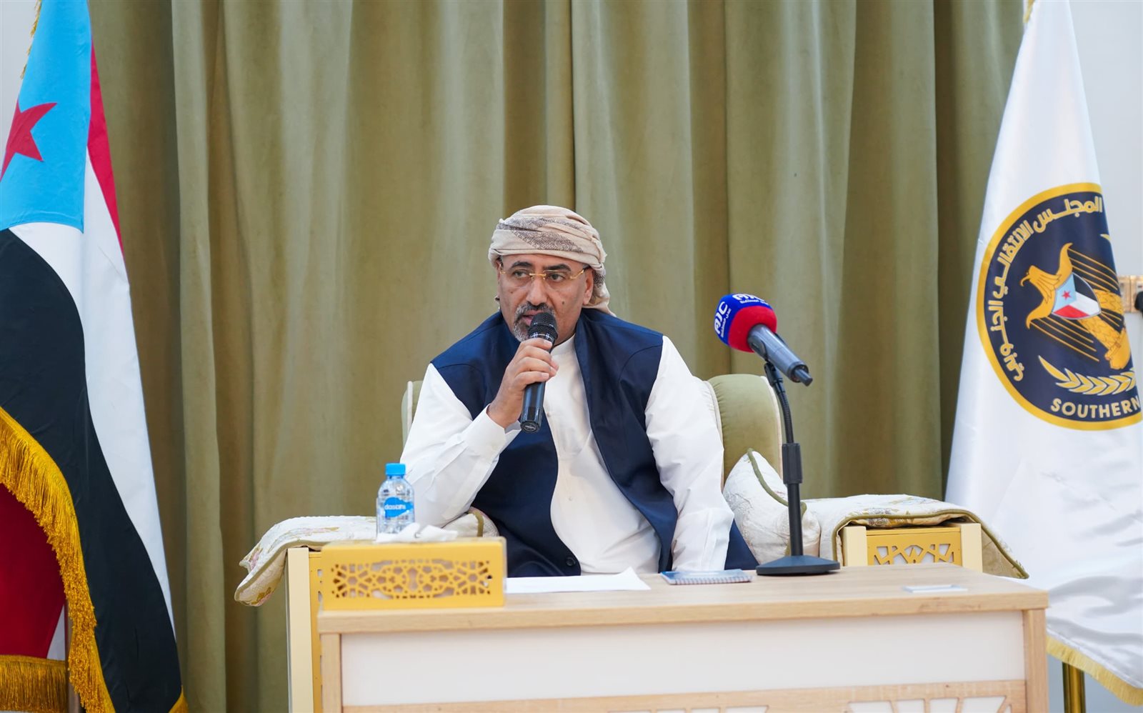 واستعرض الزُبيدي بعدها آخر المستجدات السياسية، وفي مقدمتها المستجدات المتعلقة بعملية السلام التي تقودها الأمم المتحدة لإنهاء الصراع في بلادنا، ومآلات خارطة الطريق في ظل استمرار التصعيد الحوثي في البحر الأحمر وخليج عدن.
