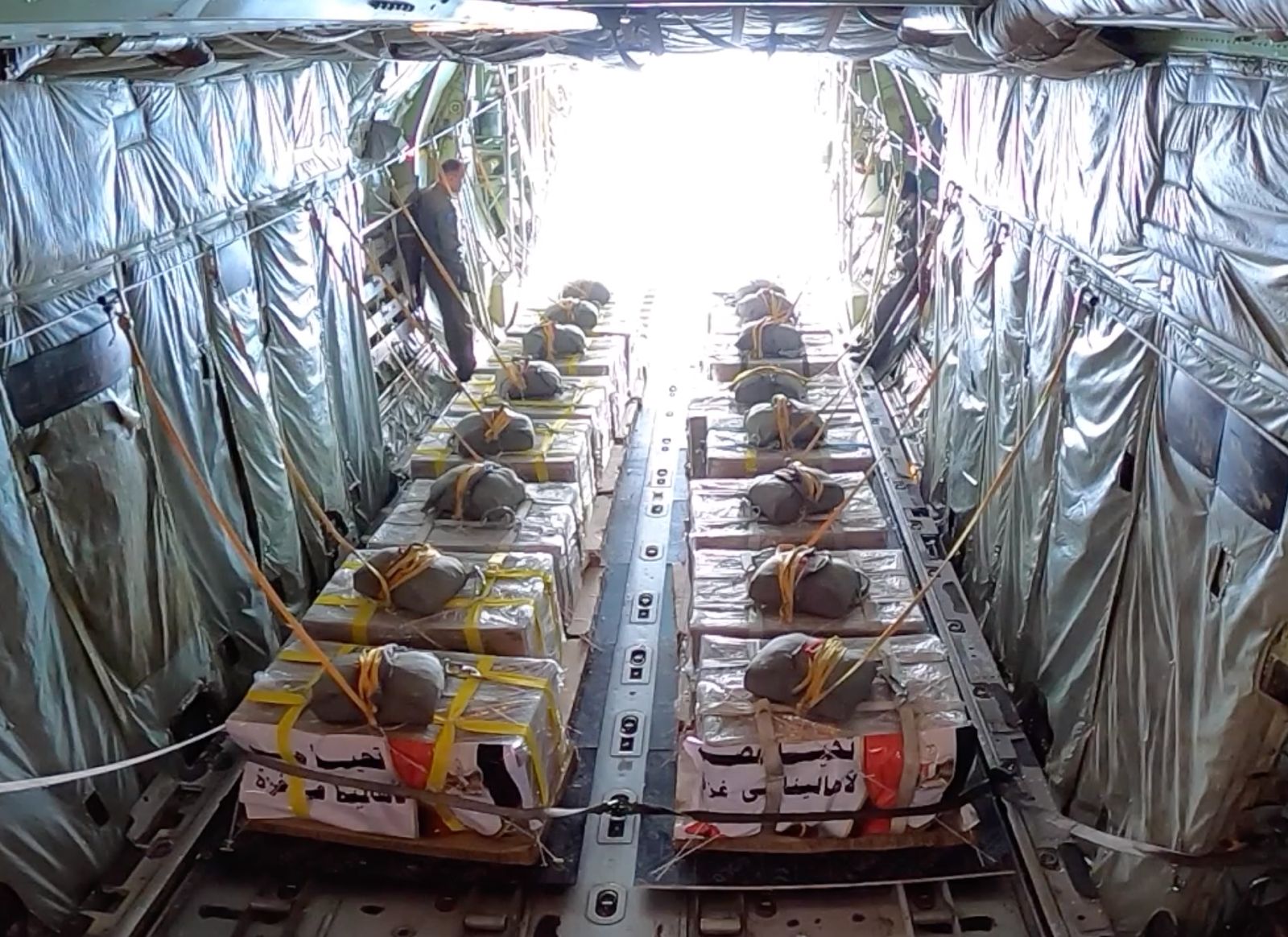 فى إطار تقديم كافة أوجة الدعم والمعاونة للأشقاء الفلسطينيين وتنفيذًا لتوجيهات الرئيس المصري عبدالفتاح السيسى رئيس الجمهورية القائد الأعلى للقوات المسلحة، كثفت القوات الجوية المصرية بالتعاون مع نظيرتها من دولة الإمارات العربية المتحدة طلعاتها من مطار العريش على مدار يومى 15- 16 مارس 2024 لتنفيذ أعمال الإسقاط الجوى لأطنان من المساعدات الغذائية ومواد الإغاثة العاجلة على شمال قطاع غزة.