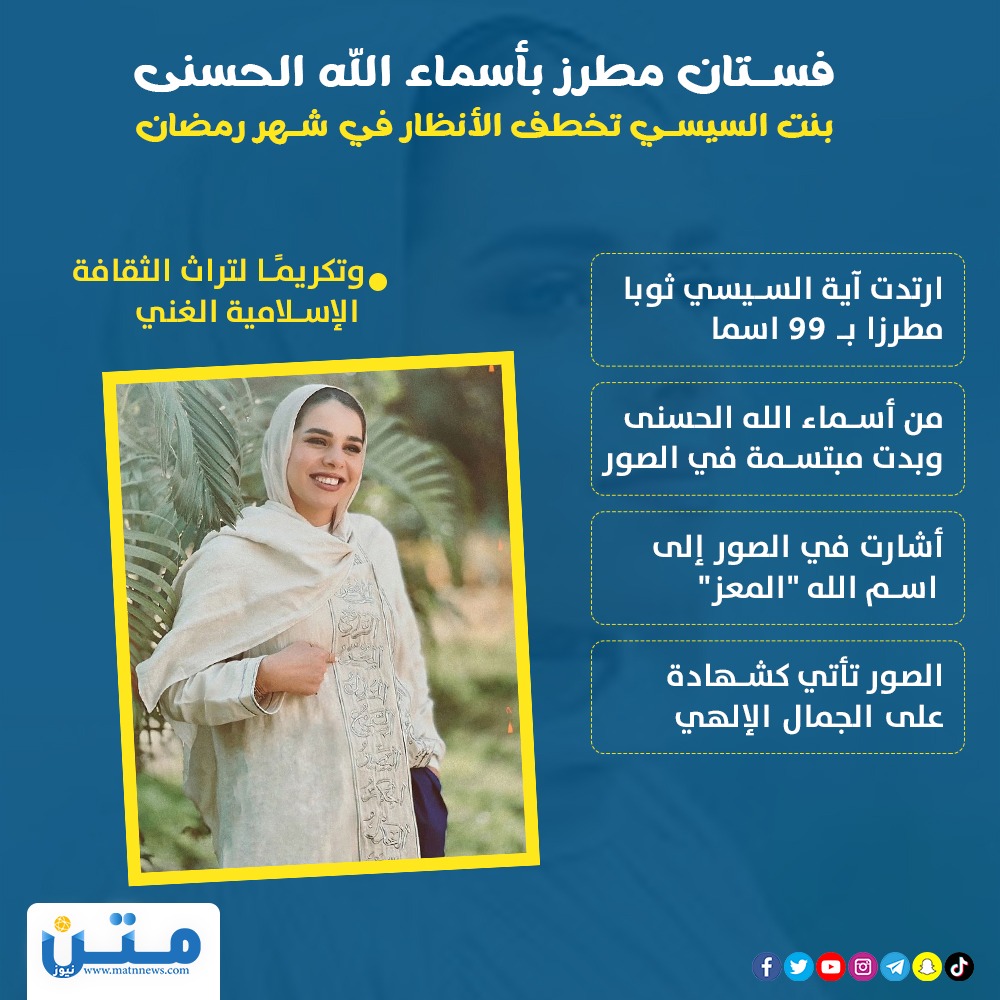 فستان مطرز بأسماء الله الحسنى.. بنت السيسي تخطف الأنظار في شهر رمضان (انفوجراف)