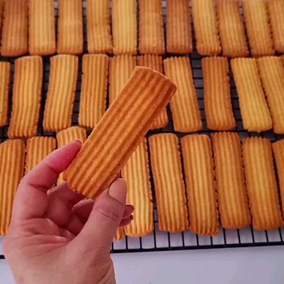 - قطعي البسكويت إلى اصابع مستطيلة متوسطة السمك والحجم ويمكنك تشكيل والبسكويت بالماكينة.