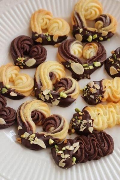 - ثم تغمس حبات البيتي فور في صوص الشوكولاتة وتوضع في سوداني مجروش أو جوز هند.