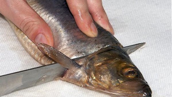 - تخصلي من سلسلة الظهر التي تنتزع بكل سهولة، ثم تخلصي من الشوك الموجود على جوانب سمكة الرنجة.