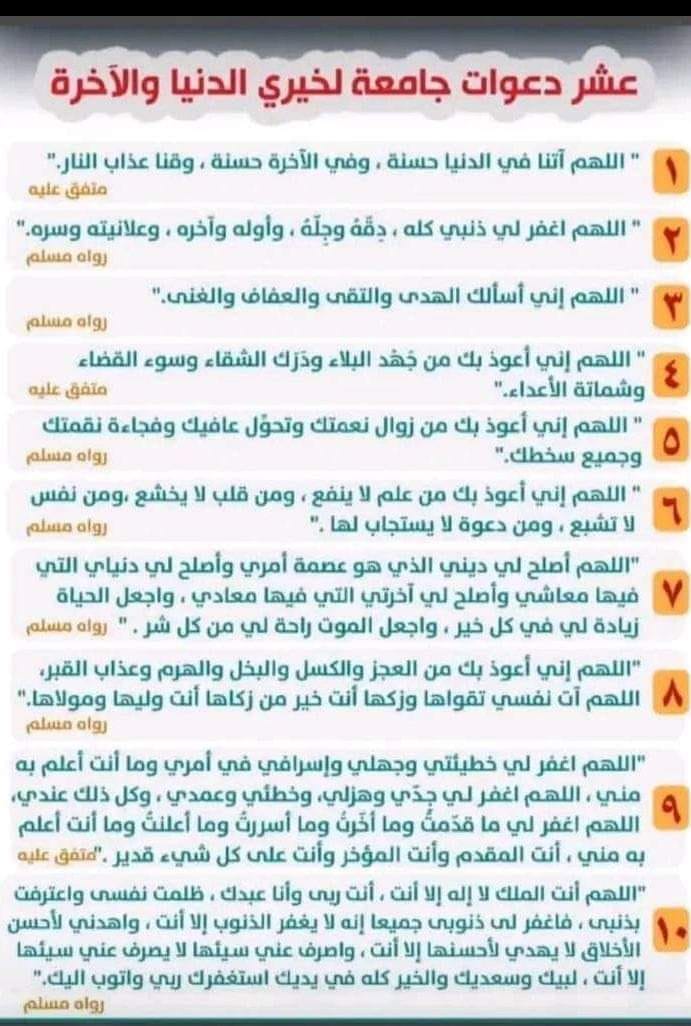 - اللهم يا ذا الجلالة والإكرام نسألك أجر رمضان كله، وتقبل منا الشهر الكريم وأحفظ لنا أهلنا، وأحبابنا فأنت الملجأ وأنت السبيل يا رب العالمين.