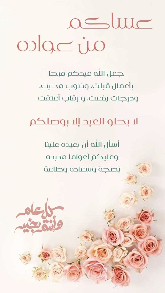 - أدام الله عليكم بهجة العيد لسنوات عديدة، كل عام وأنتم بخير وصحة وعافية.