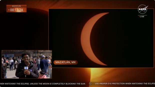 ومن خلال البث المباشر لوكالة ناسا، الذي انطلق مع بداية الكسوف الكلي، ويستمر لحظة بلحظة حتى ذروة الكسوف الكلي ونهايته تدريجيًا، رصدنا الصورة الأولى لـ كسوف الشمس الجزئي، قبل أن يصل الكسوف إلى ذروته الكلية.