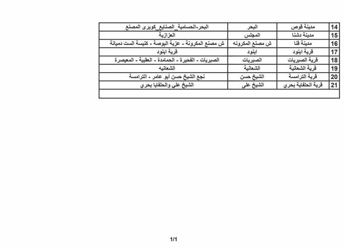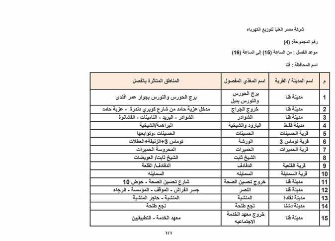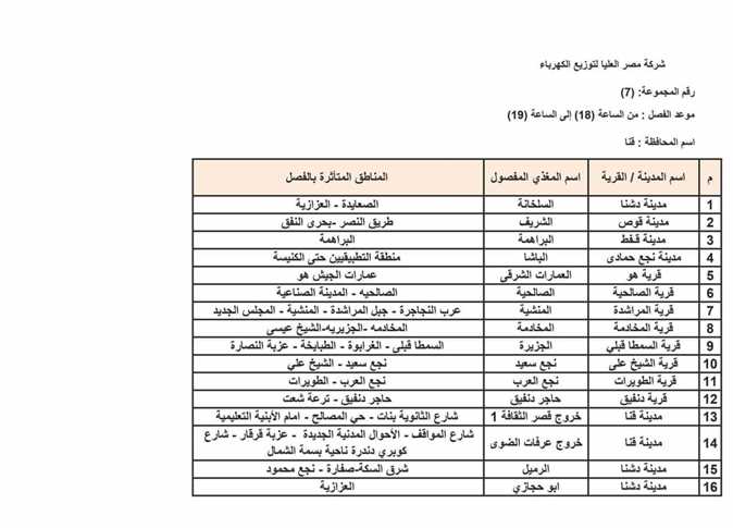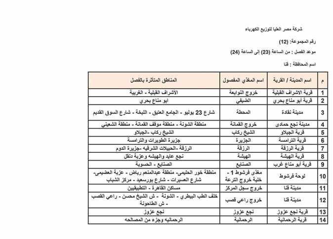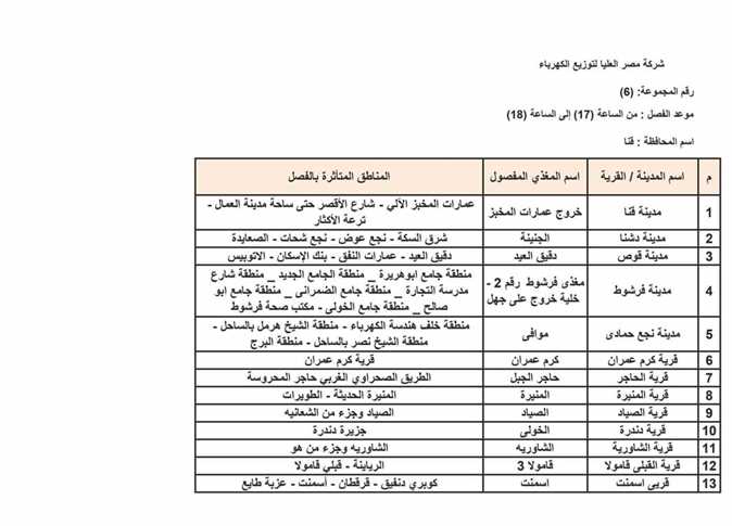 بينما كشفت محافظة قناة عن خطة جديدة لتوزيع الكهرباء بمختلف المناطق، تختلف من منطقة إلى أخرى وتشمل ساعات مختلفة خلال اليوم بناءً على المواعيد الجديدة بعد عيد الفطر، وتشمل خطة تخفيف الأحمال توزيع التيار من الساعة 11 صباحًا حتى الساعة 5 مساءً، بمدة انقطاع لا تزيد عن ساعتين، مع استثناء المناطق التي تضم مرافق حيوية مثل المستشفيات ومراكز الغسيل وحضانات الأطفال.