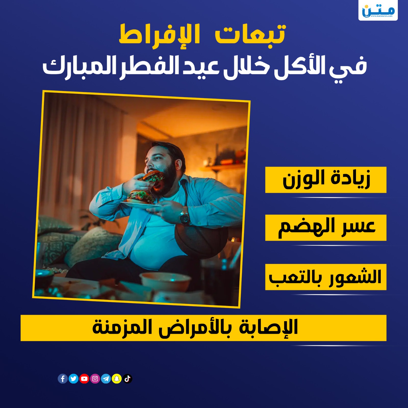 تبعات الإفراط في الأكل خلال عيد الفطر المبارك (انفوجراف) السبت 13/أبريل/2024 - 08:50 م 4/13/2024 8:50:47 PM انفوجراف متن محمدحسن شارك طباعة زيادة الوزنعسر الهضمالشعور بالتعبالإصابة بالأمراض المزمنة شارك عسر الهضم مبارك عيد الفطر عيد الفطر المبارك أمر زيادة الوزن الهضم