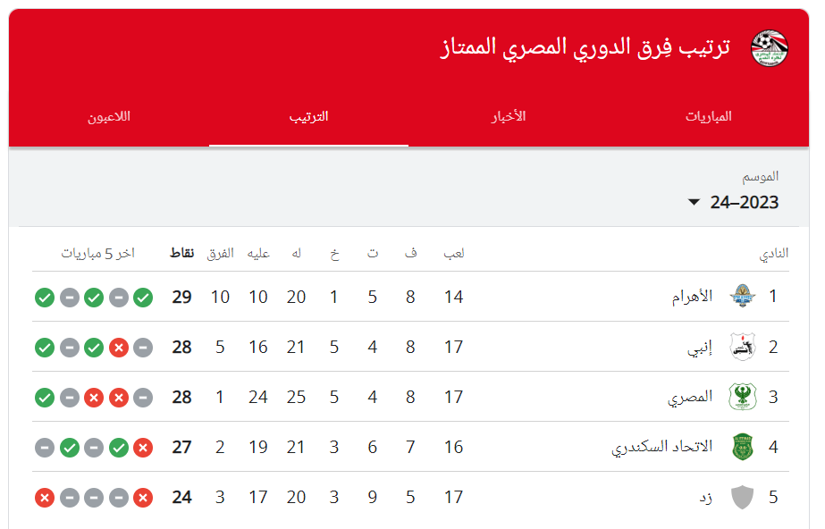قبل قمة الأهلي والزمالك.. جدول ترتيب الدوري المصري 2023_ 2024
