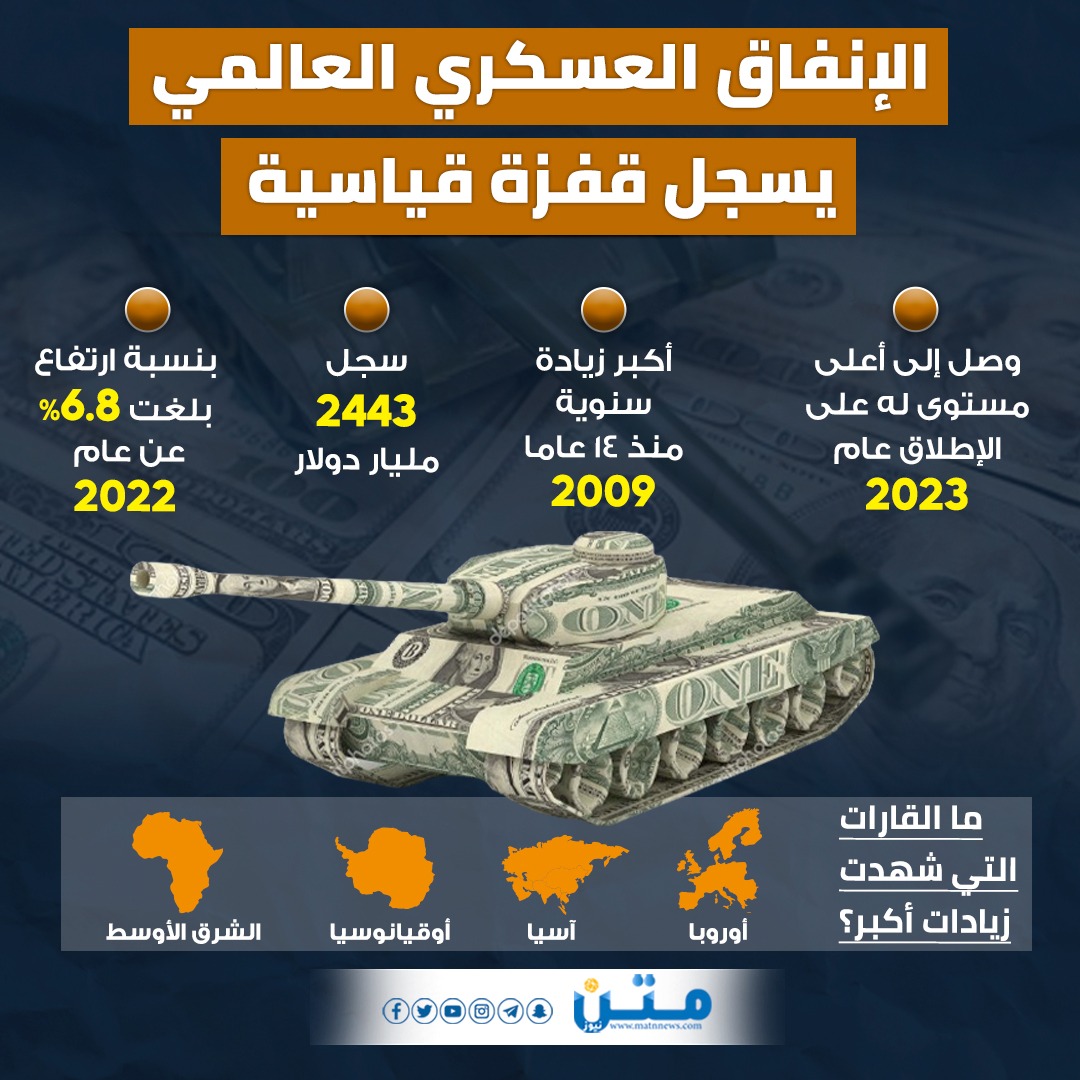 الإنفاق العسكري العالمي يسجل قفزة قياسية (انفوجراف)