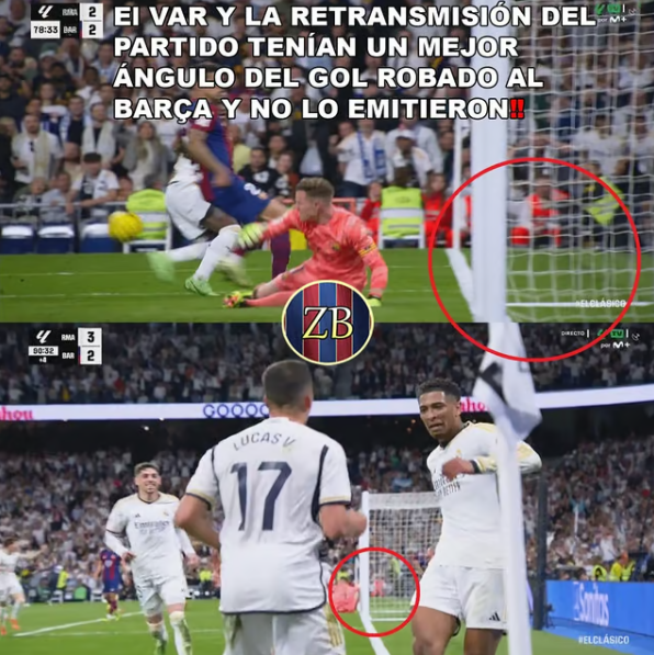 وتستند حسابات برشلونة على وجود كاميرا موازية تماما لخط المرمى ظهرت بشكل واضح خلال احتفال بيلينجهام، وهو ما اعتبروه مؤامرة متعمدة لعدم إظهار عبور الكرة خط المرمى.