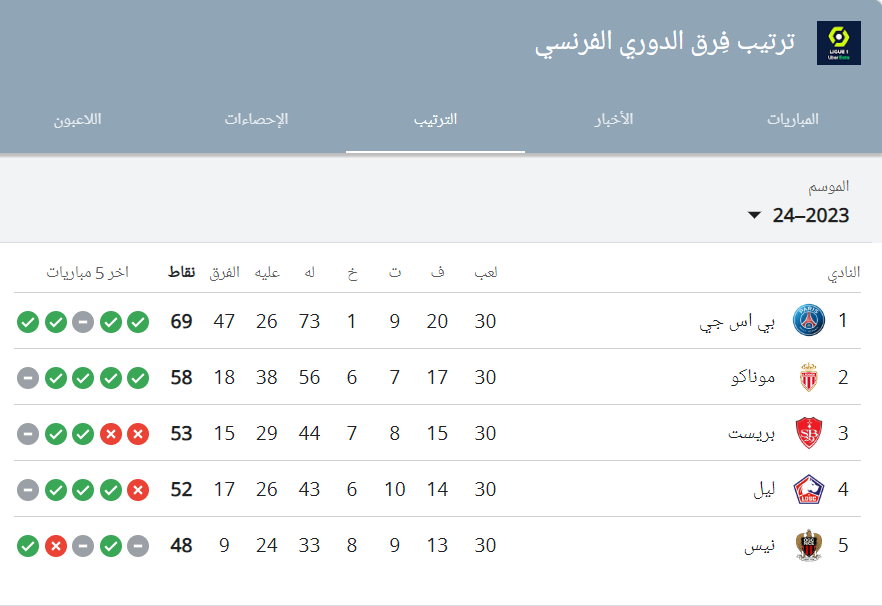 وعزز باريس سان جيرمان صدارته لجدول ترتيب الدوري الفرنسي، برصيد 69 نقطة، بينما توقف رصيد لوريان عند 26 نقطة في المركز السابع عشر.