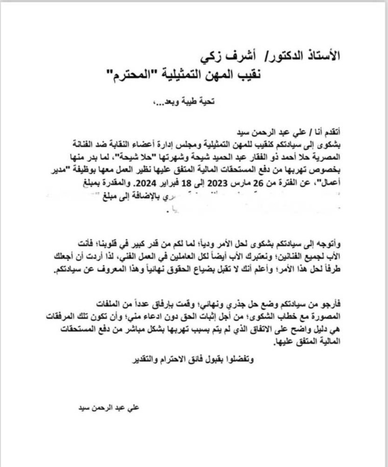 أثارت الفنانة المصرية حلا شيحة الجدل بعد قضيتها مع مدير أعمالها السابق علي عبد الرحمن، الذي تقدم بشكوى ضدها بنقابة المهن التمثيلية.